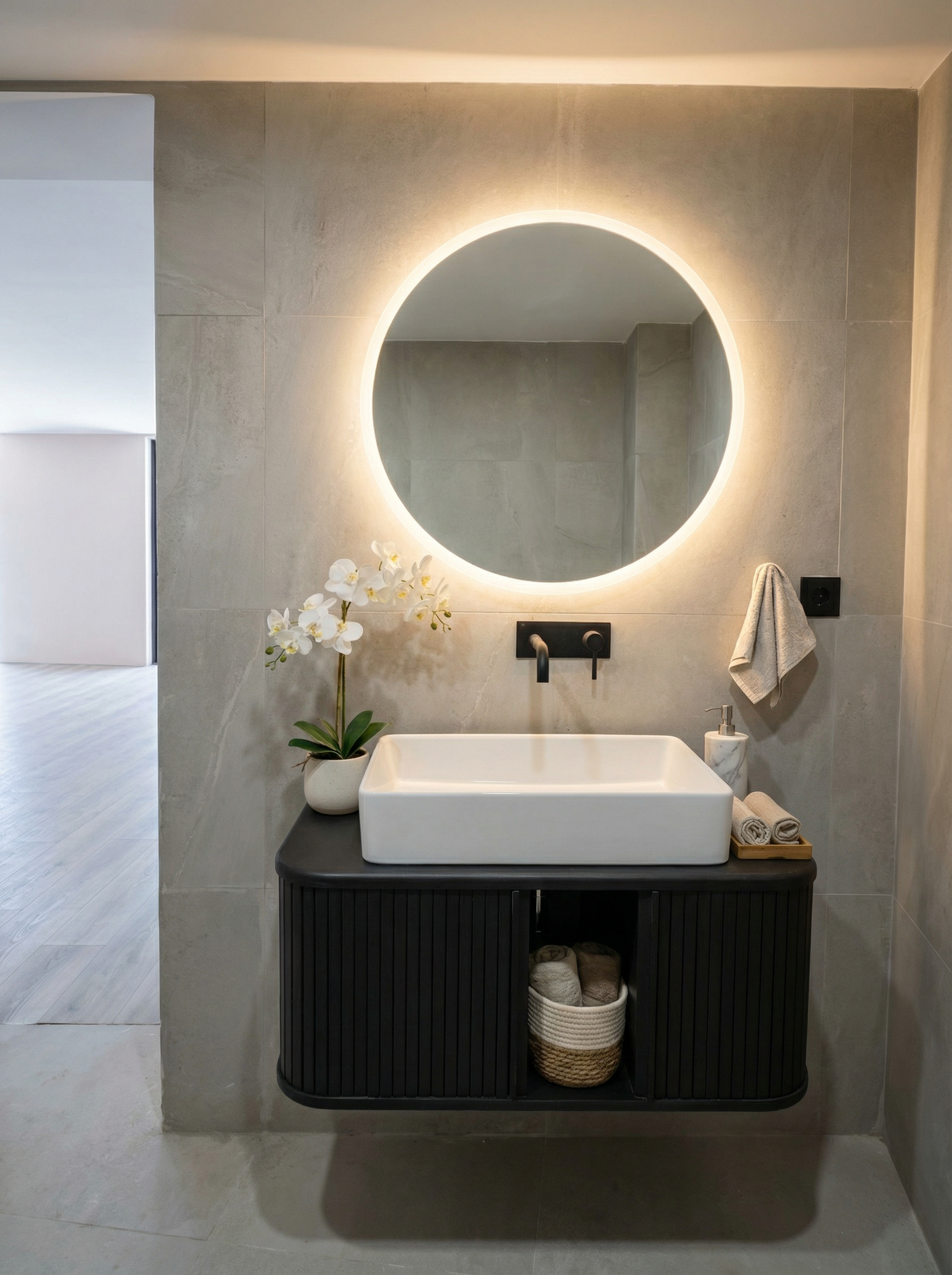 Reabilitação integral de T3 em Sintra com reforço acústico e térmico - cozinha moderna, casas de banho contemporâneas e pavimentos em madeira.