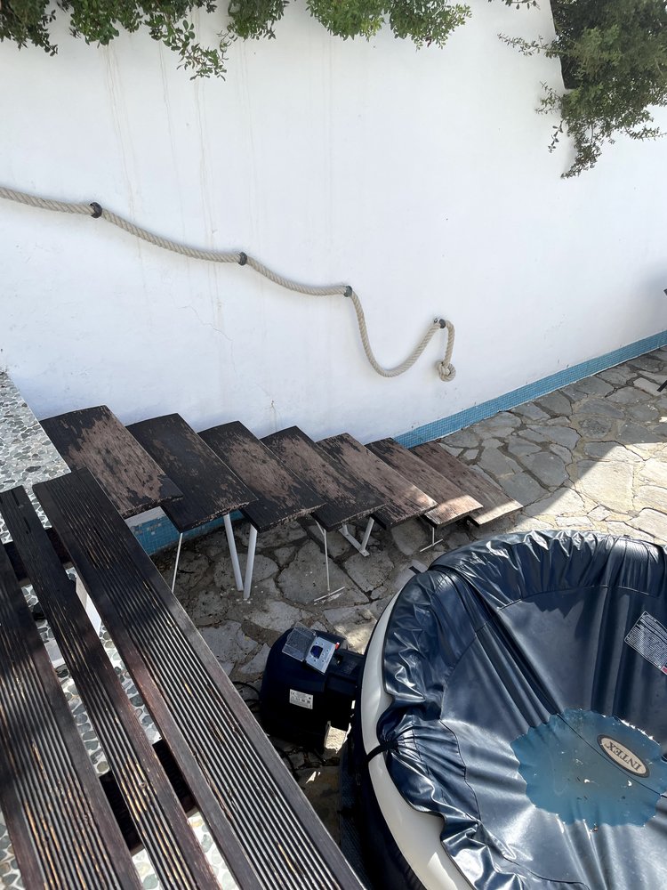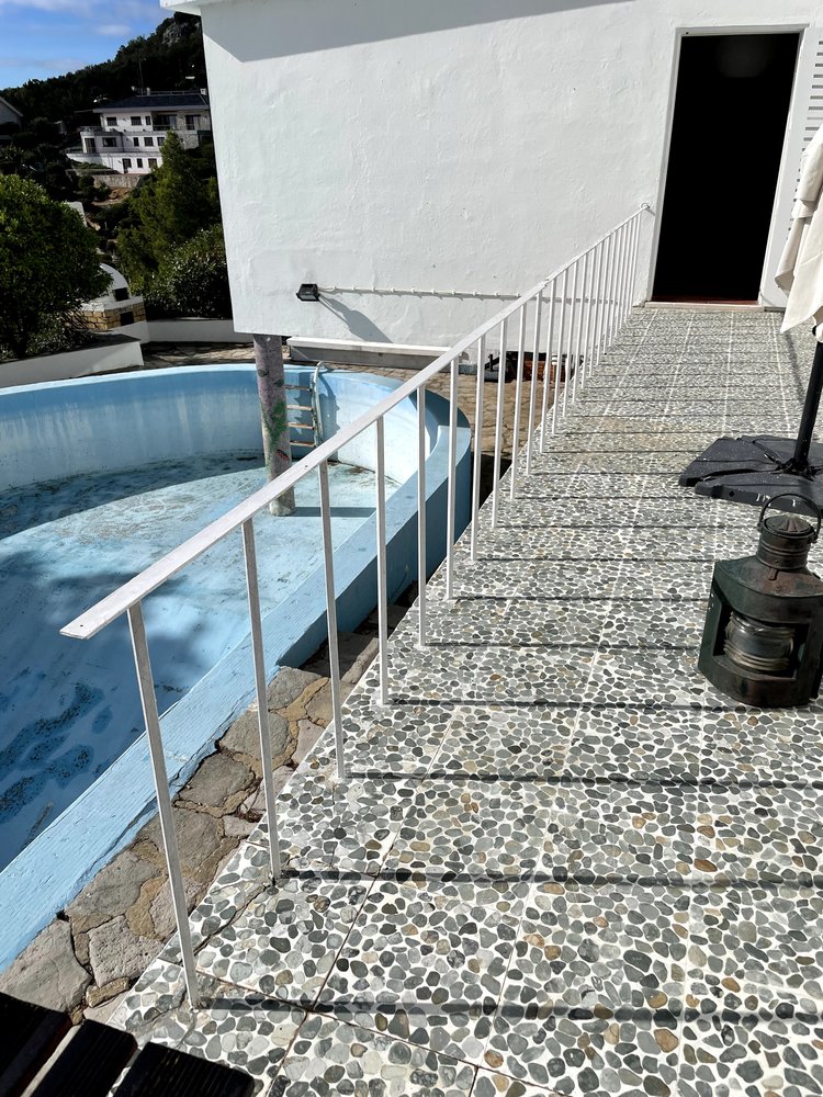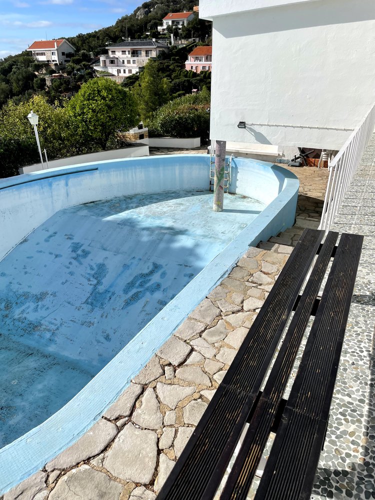 Transformação de piscina convencional em piscina infinita com vista mar na Arrábida.