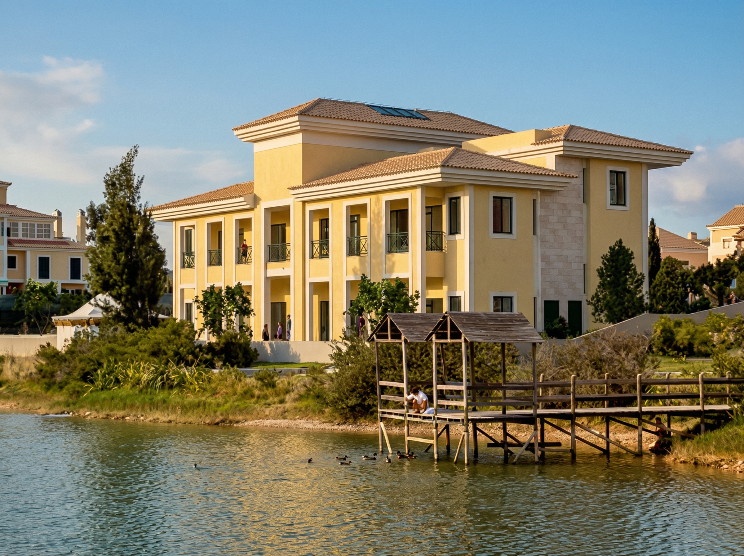 Complexo de ecoturismo na Comporta com 14 bungalows, lago, centro equestre e instalações para staff.