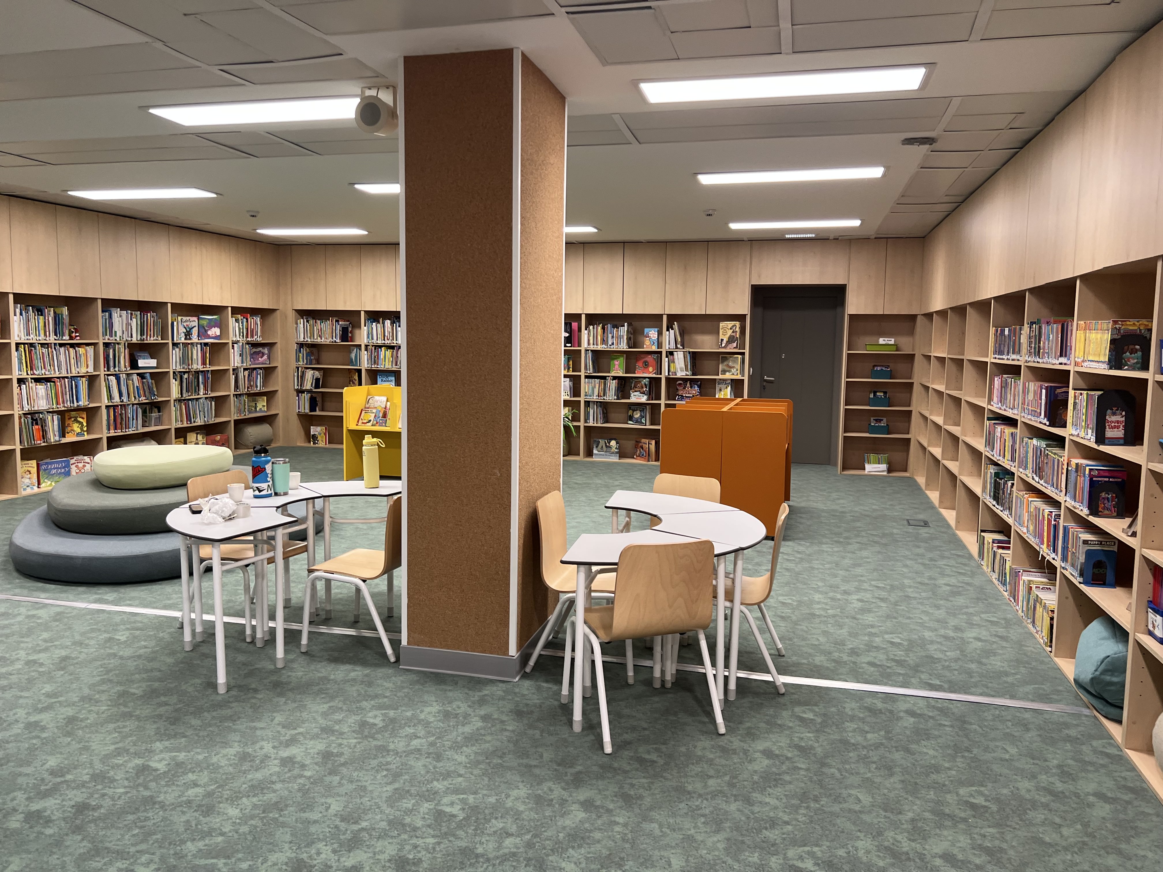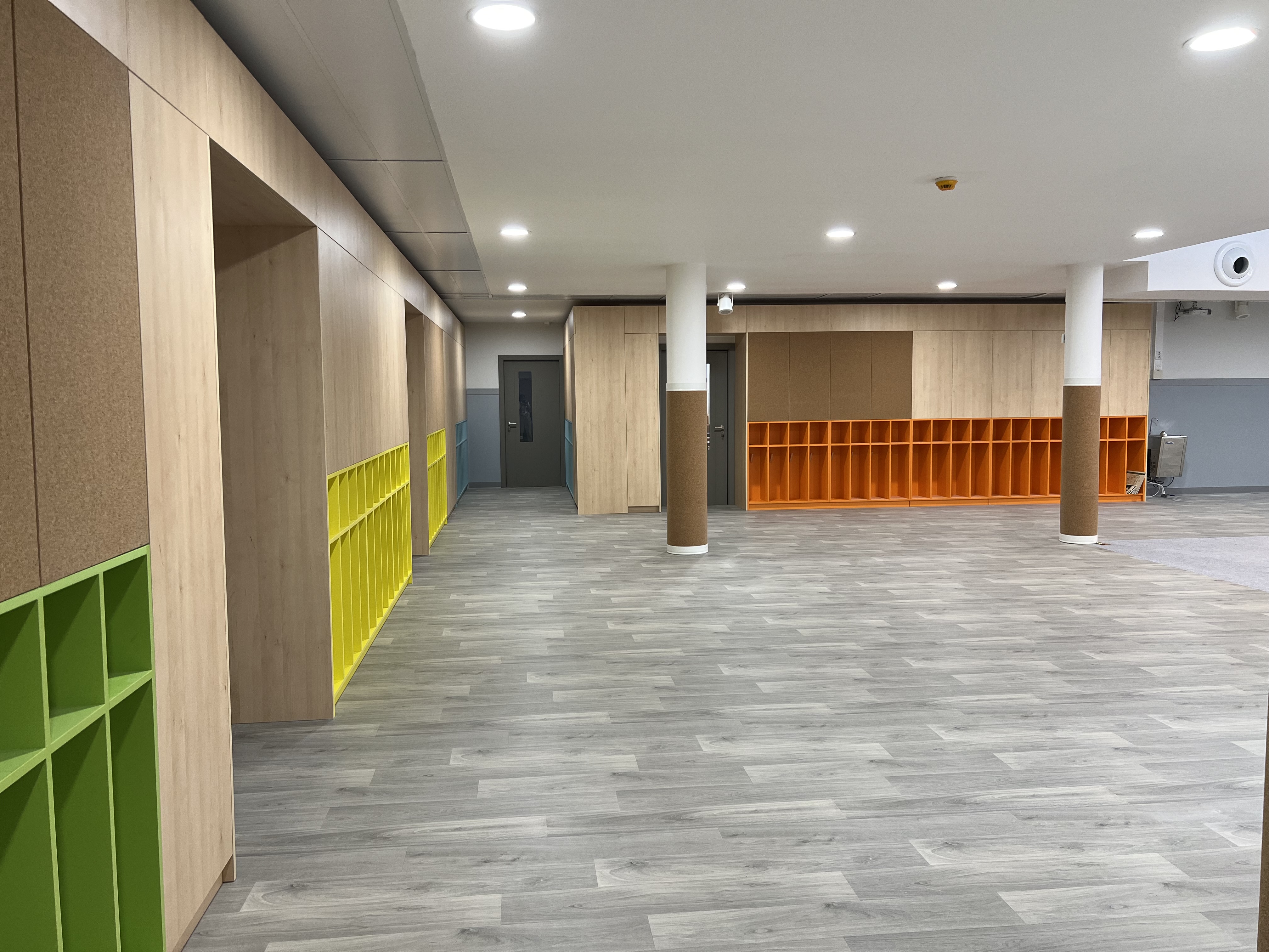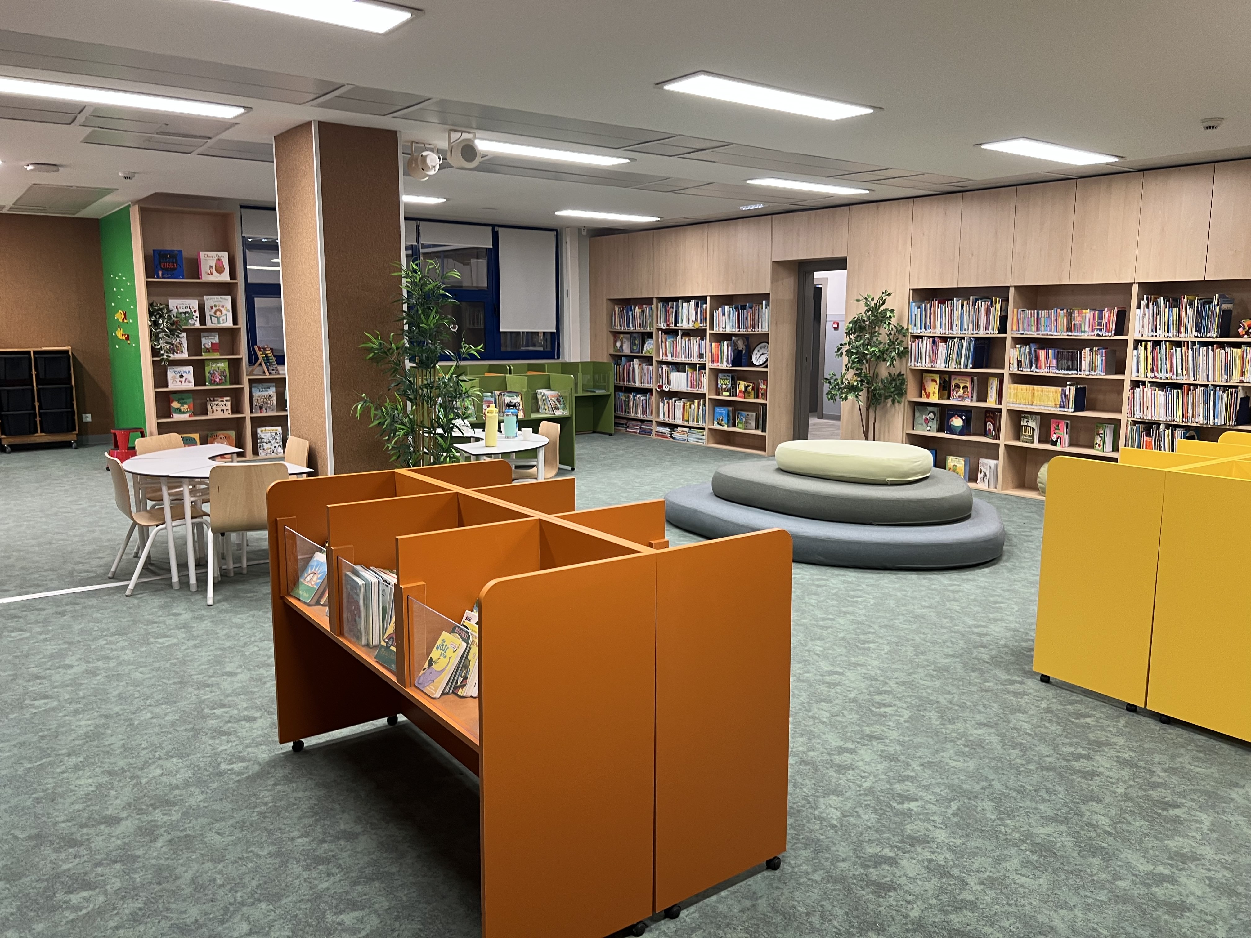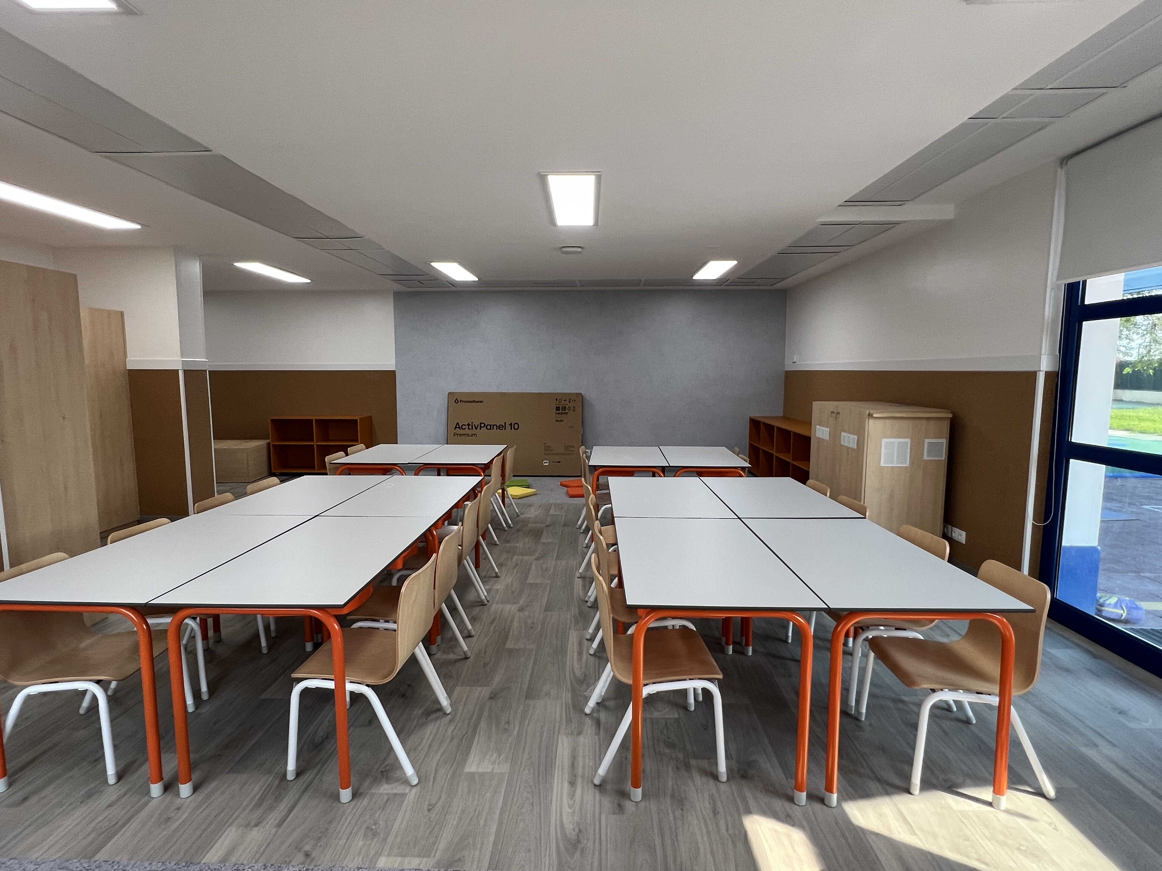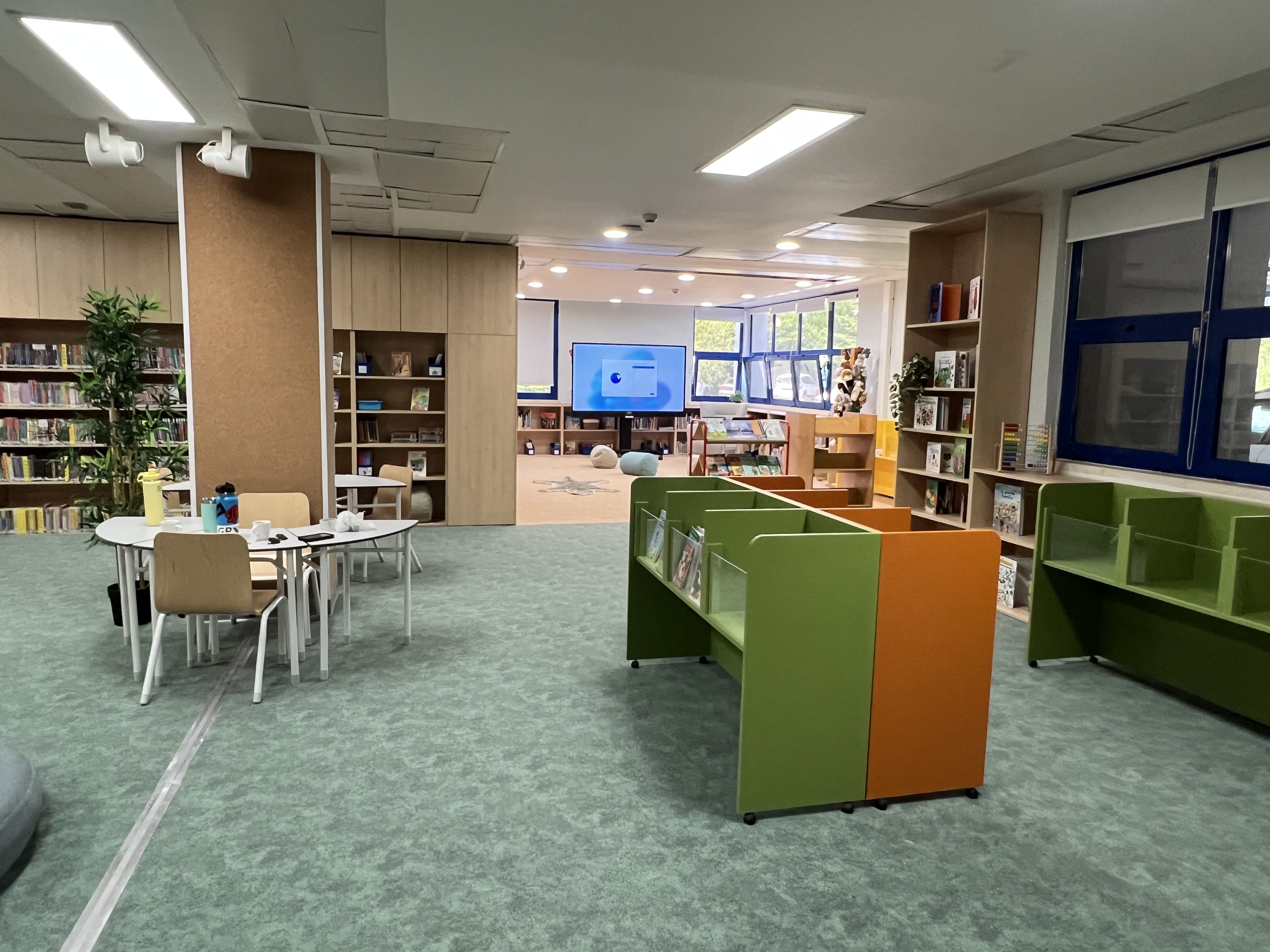 Renovação integral das salas do 1º ao 4º ano, biblioteca e áreas administrativas de uma escola internacional.